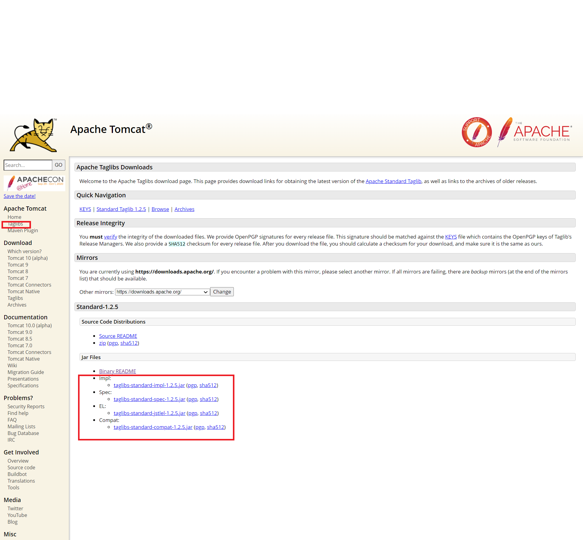 1) 톰캣 사이트에 가셔서 아래 taglib 라이브러리를 모두 다운 후, 프로젝트lib폴더에 추가해주시면 됩니다.