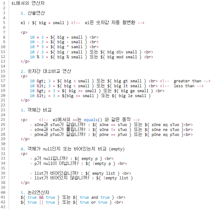 - 파라미터의 값은 param 키워드를 통해 가져올 수 있습니다. 또한 jsp값 표기법에서 파라미터는 문자열이지만, EL에서는 숫자는 숫자, 문자열은 문자열로 인식합니다.