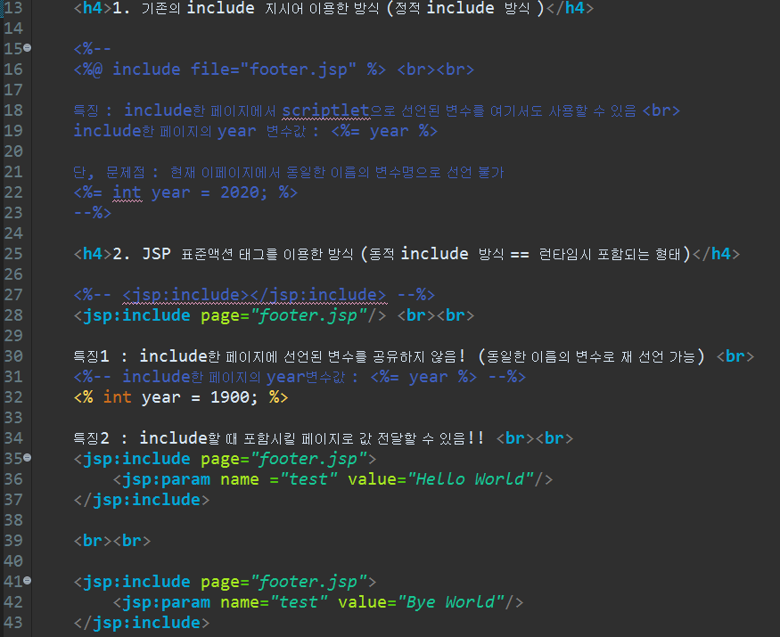 통상 JSP 파일에 스클립틀릿 <% %> 을 사용하는 것보다, JSTL과 EL사용을 권장하는 편인데