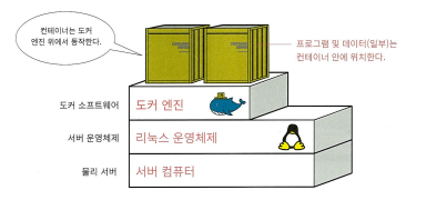 물리서버 > 리눅스 운영체제 > 도커 엔진 > 컨테이너