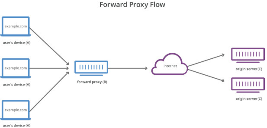 포워드 프록시 방식은 정해진 사이트에만 연결이 가능하게끔 설정이 가능해서 주로 회사 내부의 인트라넷 등 보안이 중요한 환경에서 주로 사용된다.