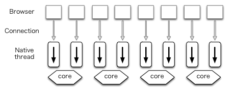 따라서 요청마다 스레드가 생성되므로 접속하는 사용자가 많으면 스레드가 그만큼 생성되어 CPU와 메모리자원의 소모가 크다는 단점이 있다.