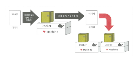 - 컨테이너는 도커 엔진만 설치되어 있으면 구동이 가능하여 다른 서버에 도커 엔진을 설치하고 새로운 도커 엔진에 이미지를 올리면 똑같은 컨테이너를 생성할 수 있다. (아래 그림 참조)